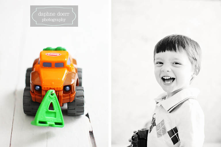 I’ve had so much fun watching both of these boys grow up. Brady is all smiles and doesn’t even flinch when his big brother is just jumping and hopping all around him. Matthew just cracked me up – he is just one big ball of energy which I found incredibly cute and endearing but I’m sure can be exhausting for Mom! Matthew also wanted me to photograph his beloved truck and for his amusement, I’ve included it in the blog and also the photo of him laughing that he got his way with the truck photo.